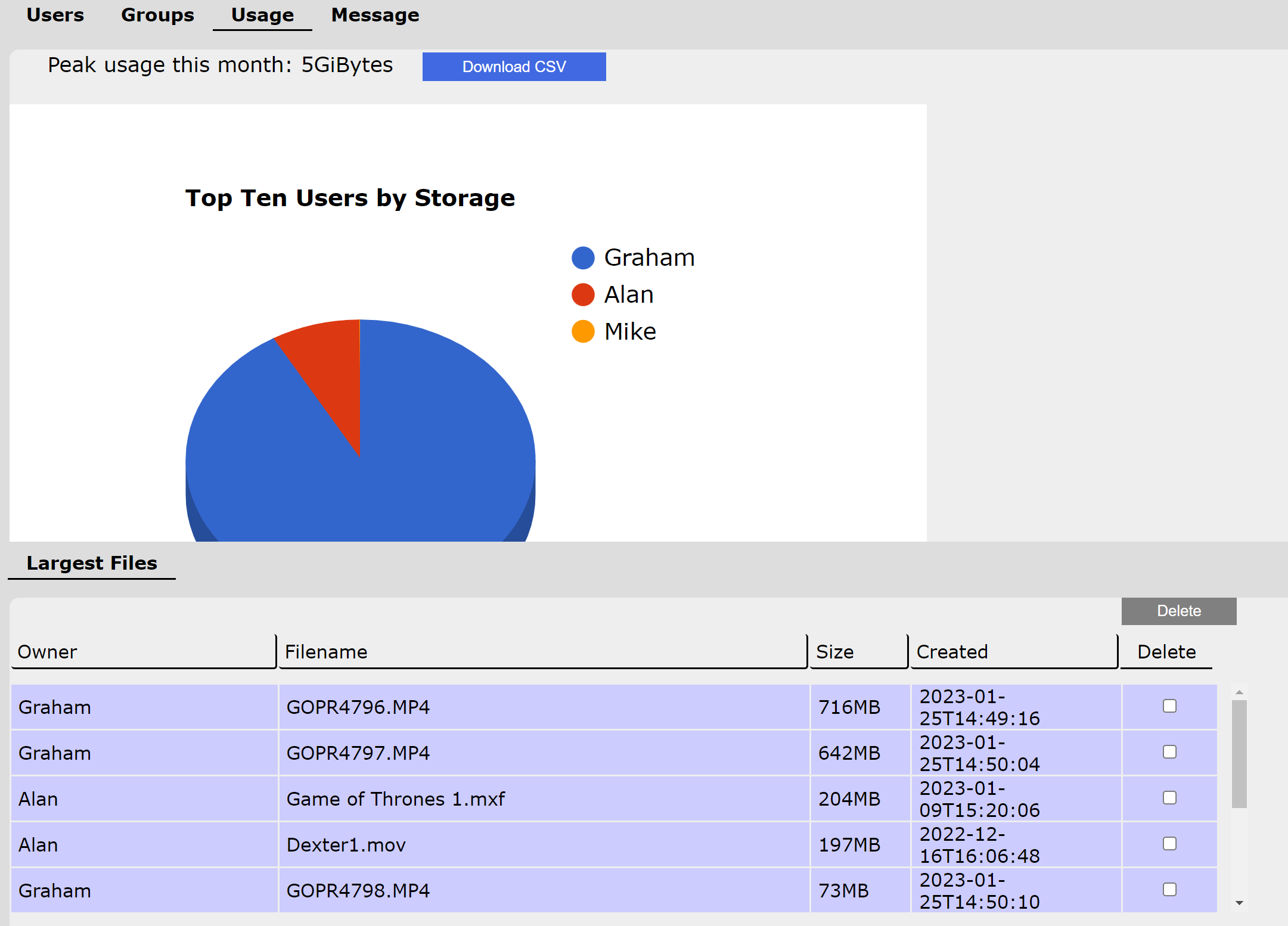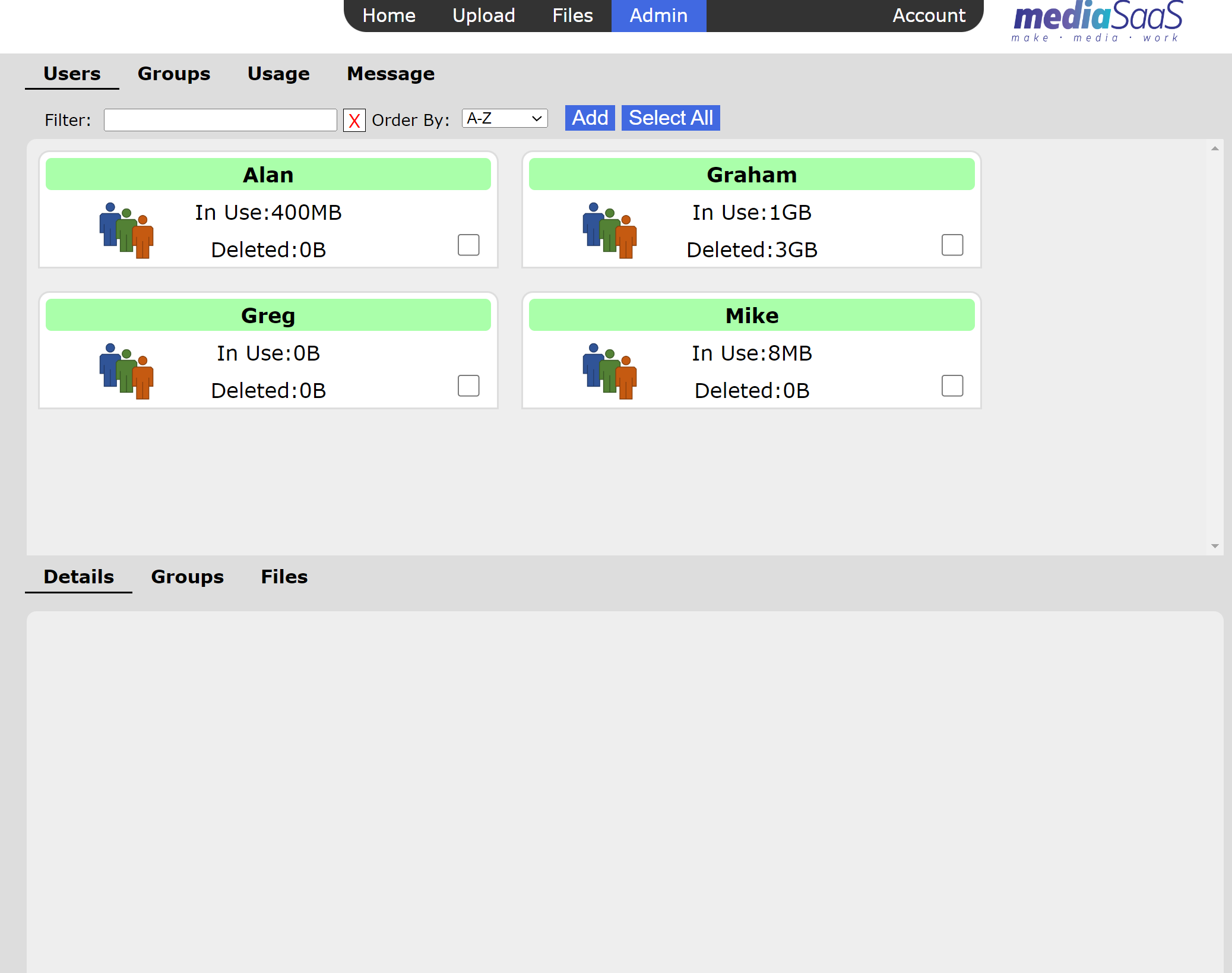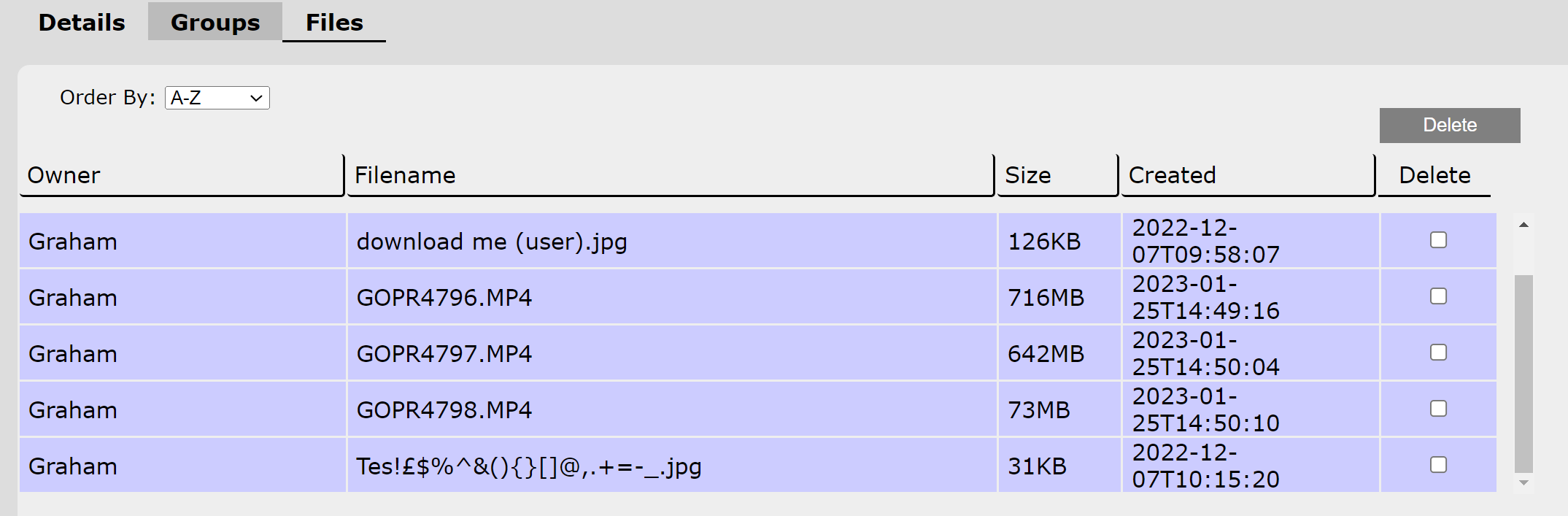 Checking the 'Assign Users on Upload' checkbox will open a dialogue allowing you to choose users and groups that automatically get assigned the newly uploaded files on completion. Close this dialogue once users and groups have been selected. Note that groups of users can only be created by organisation administrators